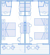 客室タイプ ファミリースイート 客室定員 4名 広さ 52㎡ 客室からの眺望 バルコニー デラックスベランダ2室、両キャビン間コネクティングドア