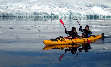 カヤック南極の湾部で、今まさに壮大な氷河や氷山が流れこむという様子をご覧になりたい方におすすめです。