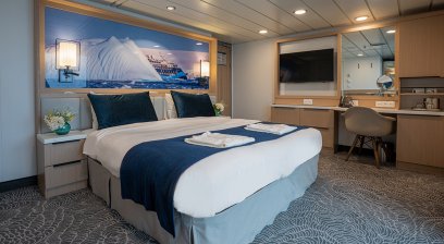 オーシャン・アルバトロスの洗練されたデザインの裏には、長年にわたる南極の過酷な環境への適応と進化の歴史が刻まれています。特許取得済みのX-BOW技術により、これまでにない安定性と快適性を実現。船内には、南極での体験を存分に楽しめるよう工夫された多彩なアメニティが揃っています。さらに、暖房完備の広々とした泥除け室には4つの外部ドアを備えており、ゾディアック船への乗船もスムーズかつ安全に行えます。