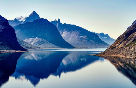 早朝、私たちはブロッスヴィル海岸(Blosseville Coast)の巨大な岸壁に近づきます。約100年前この海岸線は、ほぼ永久的な海氷により夏でも閉じ込められ、無防備な船では押しつぶされる可能性があり、船乗りたちから恐れられていました。しかし過去数十年の気温上昇と海洋技術の大幅な進歩により、人を寄せ付けず壮大なフィヨルドに保護された上陸地点に、特定の耐氷能力を強化された客船がアクセスできるようになりました。