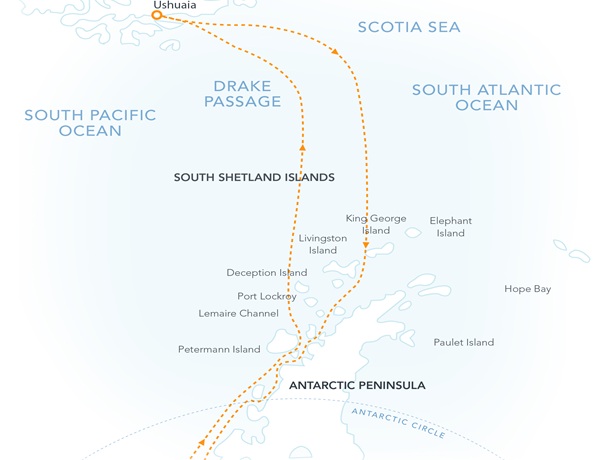 これは世界の最南端へと向かう究極の探検家の旅です。私たちは南極半島に沿って航路を定め、ごくわずかな者だけが成し遂げた南極圏横断の偉業を目指します。その道中、南極の最も魅力的な常駐者たち。ザトウクジラやシャチ、アザラシ、そしてもちろん、常に楽しませてくれる様々なペンギンたちに出会うことでしょう。