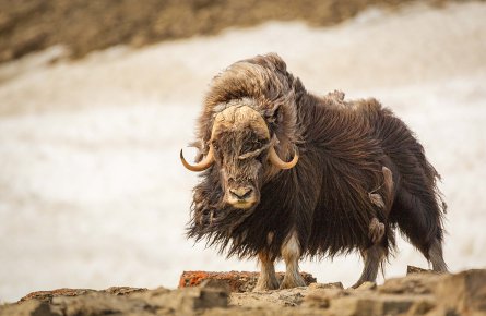 グリーンランドの人里離れた東海岸を巡る探検クルーズでは、ゾディアッククルーズと数カ所の上陸観光をお楽しみいただけます。古代トゥーレの集落跡を探索し、草を食むジャコウウシに注目してください。世界のジャコウウシの個体数の40%がここに生息しています。