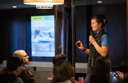 終日航海の旅程では、専門家により雪氷学、歴史、野生生物、など旅行に関する魅力的なテーマのプレゼンテーションなどを実施し船内生活をお楽しみいただけます。