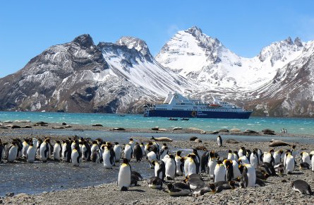 キングペンギンに別れを告げ、南極半島を目指します。船内では、野生生物や探検の歴史などのプレゼンテーションでサウスシェトランド諸島や南極半島到着に備えます。 - 宿泊