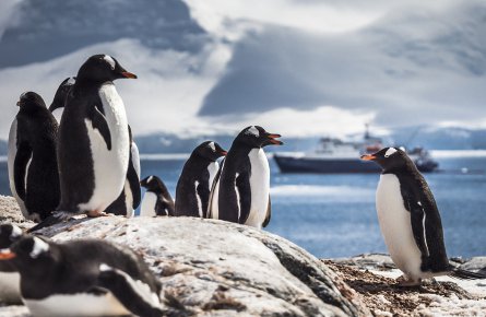 この探検クルーズでは、険しい岩肌、真っ白な雪、そして驚くほど多様な野生動物が織りなす絶景を堪能できます。クジラやアザラシ、そして数千羽のペンギンに会いに行きましょう。