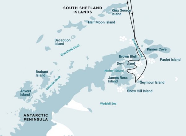 旅程はすべて目安です。プログラムは氷、天候、野生生物の状況により変更される場合があります。上陸はIAATO規制に基づき、観光ポイントの状況、許可、環境への配慮に応じて行われます。正式な航海計画と上陸はシーズン開始前にIAATOと調整しますが、最終的な旅程はエクスペディションリーダーが決定します。探検クルーズでは柔軟性が最も重要です。当社の船の平均巡航速度は10.5ノットです。