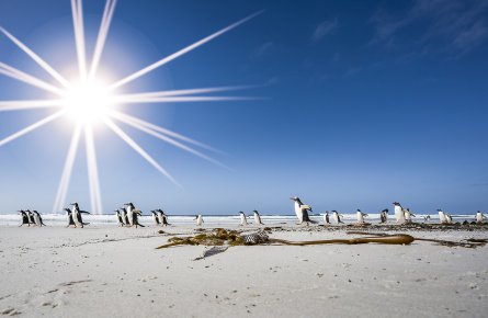 フォークランド諸島は、近くで観察しやすい豊富な野生動物が生息していますが、常に注意が必要です。これらの島々はほとんど知られていない宝石のような場所であり、1982年にイギリスとアルゼンチンの間で戦争が行われた場所でもあります。さまざまな鳥類が生息しているだけでなく、周辺の海域ではミナミカマイルカとイロワケイルカの両方を目にする可能性が高いです。ここでは次の場所を訪れることがあります。