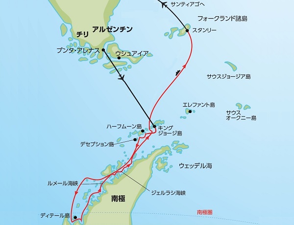 この南極クルーズでは、南緯66度33分を通過し、南極圏に到達しさらに南にクルーズする事を目的にしています。
