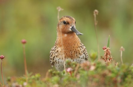 40㎞の砂利浜に位置するメイニビリギノは、ヘラシギの繁殖地として世界的に最も重要な場所です。ヘラシギの回復タスクフォース・モニターのメンバーにより15番(つがい)が監視されています。