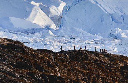 日が暮れる前にオーシャン・アトランティック号は、巨大なエキップ・セルミア氷河へと向かいます。イルリサットの北に位置するこの氷河は、素晴らしい美しさで有名です。また、様々な北極探検家たちの拠点としても選ばれた場所で、スイスの著名な研究者アルフレッド・ド・ケルバンが1世紀以上前にグリーンランド内部の氷床を探検する際に、拠点として使用した場所としても知られています。