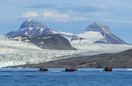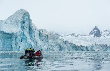 午後、さらに北へ向かってフィヨルド地形へ入っていきます。氷の状況によってリリーフック氷河の正面に沿ってゾディアッククルージングまたは講座をお楽しみください。運が良ければ、7月14日氷河がフィヨルド内へ分離しているフィヨルテンデ・ジュリの湾の壮大な景色を通ることができます。こうして風光明媚な風景と北極の野生生物でいっぱいの1日が終わります。