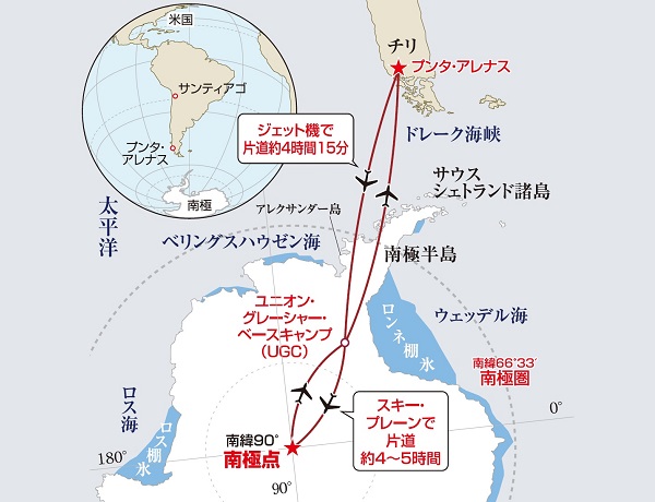 ●利用キャンプ:ユニオングレーシャーキャンプ、サウスポールキャンプ(南極点)