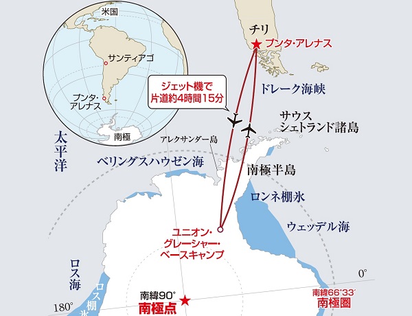 区間:チリのプンタアレナス~南極大陸ユニオン氷河間
