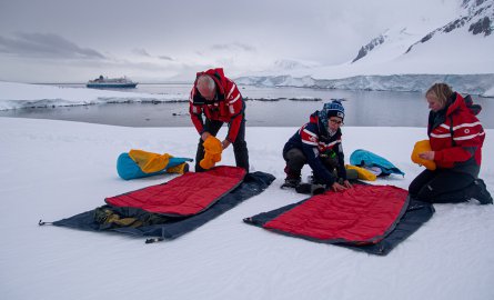 キャンプ南極の陸上で、一夜の「キャンプ体験」をいたします。キャンプに必要な装備等はすべてポーラー・ラティチュード社でご用意いたしますので、南極の野外で「ひっそりと静まりかえる氷の大地」をごゆっくりお楽しみいただけます。また、写真撮影にたっぷり時間を取りたいというお客様には特におすすめです。