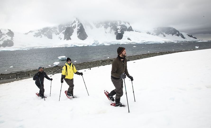スノーシューイングパウダースノーのなだらかな斜面をハイキングして、見晴らしの良い場所に到達するアクティビティです。事前の経験は必要ありません。すべての上陸活動中に行われるわけではありません。