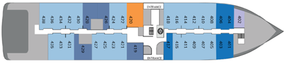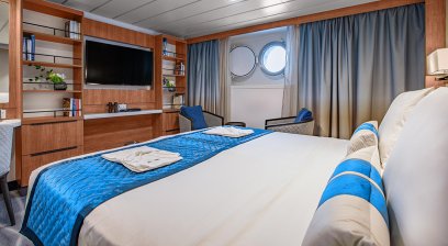 本船には、合計93室の快適なキャビンがあり、その全てが海側に面しています。(90%のキャビンは、バルコニー付)。船内には、幾つかのレストン、ウェルネスエリア、バー、オープンデッキのダイニング設備、モダンなレクチャー・ラウンジなどの施設を整えています。本船は環境に優しい、グリーン・イニシアチブ・プログラムを実施することで、お客様に絶対的な快適さと持続可能性の両方を保証します。