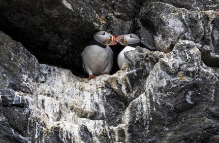 スヴァールバル諸島北東部の広大な氷の荒野へとクルーズしていきます。この地域は暖かく湿った海流が届くスヴァールバル諸島西部と違い、岩だらけの極地の砂漠の風景が見られます。山からは広大な氷河が海へと流れ込み夏でも海が氷で閉ざされていることもよくあります。そんな不毛な自然環境でも野生生物が生息しています。断崖絶壁には数十万の海鳥が群がり営巣している様子や獲物を狙うホッキョクキツネ、冷たい海域では貝類が豊富に生育しておいりその捕食者セイウチの姿がよく見られます。