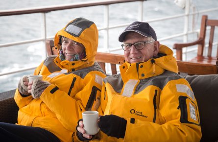 グリーンランド海を南に航行する際、エクスペディションチームは、野生生物やグリーンランドの歴史などについてのプレゼンテーションをいたします。デッキで、本船の周りを飛び交う海鳥を観察したり、写真をシェアしたり、バーでカクテルを楽しんだり、ビデオの観賞などでのんびりお過ごしください。 - 宿泊