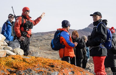 ロングハイキングは1グループ最大24名で実施され、武器を装備した2名のエクスペディション・スタッフが同行します。また、ゾディアックボート(小型ゴムボート)が海岸線に沿って先行し、ホッキョクグマがいないか監視します。このアクティビティに参加するお客様は海岸線、ツンドラ、低い丘陵地、川の横断などを含むやや起伏のある地形で、少なくとも15kmを歩く意欲と体力が求められます。ハイキングは休憩時間を含めて、開始から終了までおよそ6時間かかります。歩くペースはゆったりとしており、高山地帯(アルパイン地形)を横断することはありません。ロングハイキングに参加しない乗客は、午前中にハイキングの出発地点で上陸し、その後客船でハイキングの終了地点へ移動し、午後に2回目の上陸を行います。