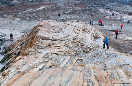 この日のロングハイキングは、シドカップからノルドエストブクトまでの約12km(北東方向)です。ここではホルガーダンスケスブリラーから流れる川が海に注いでいます。その後、海岸沿いに南下してサタカジクまで歩いていく予定で、道中にはクジラの脊椎やトゥーレ文化の夏の住居跡を見ることができます。ロングハイキングに参加しない乗客は、この地点で合流し、午後の2回目の船外活動に参加します。- 宿泊