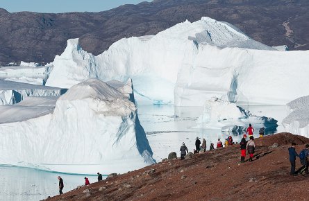 午前、巨大な氷山を目撃します。高さ100m以上、長さ1kmを超えるものもあります。フィヨルドの水深約400mしかないため、多くの氷山は底につかえています。その後、シドカップ付近に上陸します。ここからはハルブレドニングの素晴らしい景色が望め、ホッキョクウサギを見るチャンスもあります。