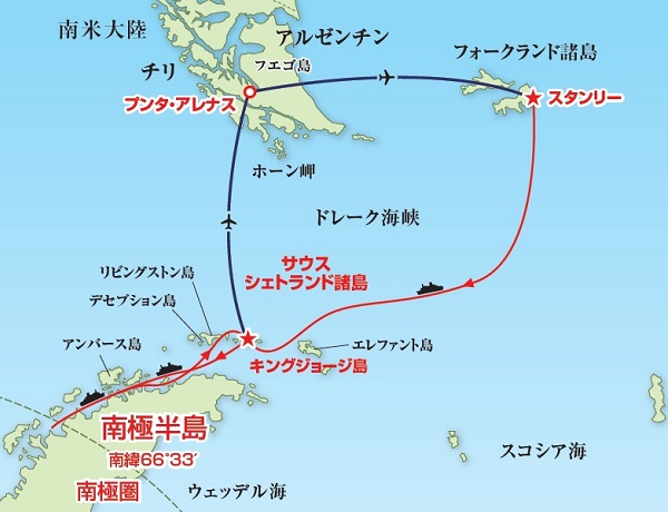 - スタンリー/南極クルーズ乗船地