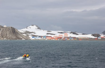 朝、サウスシェトランド諸島のデセプション島に到着します。