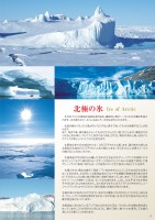 北極の氷 冬が近づくと北極海の海面は凍り始め、最終的に厚さ1~3mの氷の層が形成されます。氷の厚さが3~4mになると5~8年は持ちこたえます。 気温が暖かくなったり風が吹いたりすると真冬であっても氷が崩壊することがあります。また、海流や嵐、潮の動きによっても氷がたわんだり、裂けたりします。亀裂が大きくなると海氷域に、ポリニアと呼ばれる「水路」ができ、黒色の海水と真っ白なパックアイスが美しいコントラストを見せます。 北極海全体での氷域は冬には1,080万平方kmに達します。夏の終わり頃には北極海の氷域は800万平方kmにまで縮小します。その半分以上は厚さ3~5mの融けることのない氷です。 北極海盆の浮氷群から分離した流氷の主な出口はグリーンランドの東側(大半はスピッツベルゲン島の西)沿いです。この氷は1日12.8kmの速度で漂流して東グリーンランド海流に流れ込み、この海流にのって北大西洋に流出していきます。 北極の氷は、概ね北緯80°西経170°地点を中心として、巨大な右回りの渦となって流れます。氷は同じく北極海盆を出てカナダ北極圏の群島を通り抜けますが、そのほとんどは島と島の間の狭い海峡で詰まってしまいます。アラスカの海岸からベーリング海峡へと流出していく氷もあります。しかし、北太平洋では氷原はそれほどなく氷山もありません。北大西洋では冬にはラブラドルの沖合からニューファンドランドにかけて240km程の海域に定着氷が見られます。北極の海には海水以外でできている氷が2種類(「氷河の氷」と「川の氷」)あります。グリーンランド西岸を漂流する氷は、「流れの速い氷河」が北大西洋の氷山の主要な発生源となっています。北極海盆に流れ出ているアジアおよび北米の大河は、「川の氷」の主要な発生源となっています。これが海の氷と同じように、壊れて裂け、数十kmも漂流して北極の海にたどり着くことがあります。Ice of Arctic4