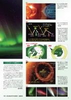 オーロラの光の色は、主に、赤、緑、青、ピンク色です。オーロラのカーテンの上の部分では赤、下の部分では緑になります。より激しいオーロラが出た場合には、カーテンの下の端が青やピンク色に輝きます。 オーロラの色は、オーロラ電子が衝突する大気と関係しています。オーロラ電子が大気の酸素と衝突した場合には赤や緑の色が発光し、窒素と衝突した場合には青やピンク色が発光します。 さらに、オーロラ電子のエネルギーにも関係しています。エネルギーが低いと赤であり、高くなるにつれ、緑、青、ピンク色となります。実際のオーロラは、様々なエネルギーの電子により、いろいろな高度で起こっていることから、その色合いは多種多様です。 (図5参照)オーロラの色文責 : 国立極地研究所名誉教授 佐藤夏雄◀オーロラの源は太陽であり、そのエネルギーは地球まで太陽風で運ばれてくる。 ◀遠く離れた人工衛星から特殊なカメラで撮影したオーロラオーバルの写真。地磁気の極や主な地域名も示した。 ◀オーロラが発光するメカニズムを示した模式図。▼北半球と南半球の地図上にオーロラ帯の位置を示す。地磁気の極と主な観測点の位置も示した。このオーロラ帯の地域に行けば、天気の良い夜には、オーロラを見るこのとのできる可能性は高くなる。▼様々な色をしたオーロラの例。緑色をしたオーロラが最も多く発生する。真っ赤なオーロラは太陽活動が高い時期に現れる。図1図2図3(オーロラ帯の位置)図4図5北極南極6