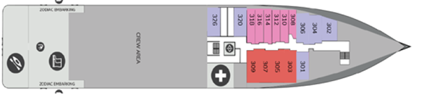 本船には、合計93室の快適なキャビンがあり、その全てが海側に面しています。(90%のキャビンは、バルコニー付)。船内には、幾つかのレストン、ウェルネスエリア、バー、オープンデッキのダイニング設備、モダンなレクチャー・ラウンジなどの施設を整えています。本船は環境に優しい、グリーン・イニシアチブ・プログラムを実施することで、お客様に絶対的な快適さと持続可能性の両方を保証します。